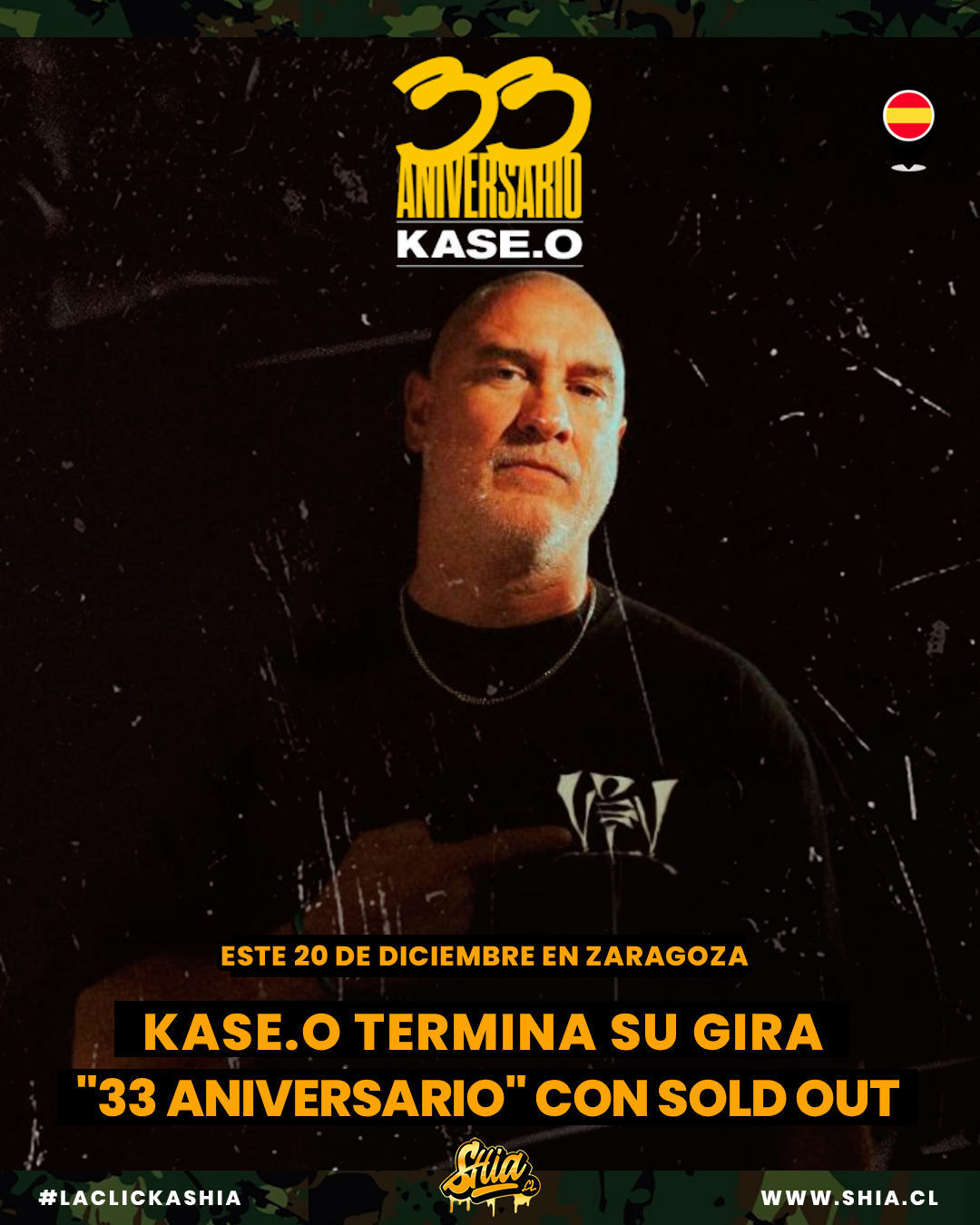 Luego de una tremenda gira por España y México el icono del p**to RAP Kase.O dará este 20 de diciembre en Zaragoza el concierto fin de su gira “33 Aniversario”