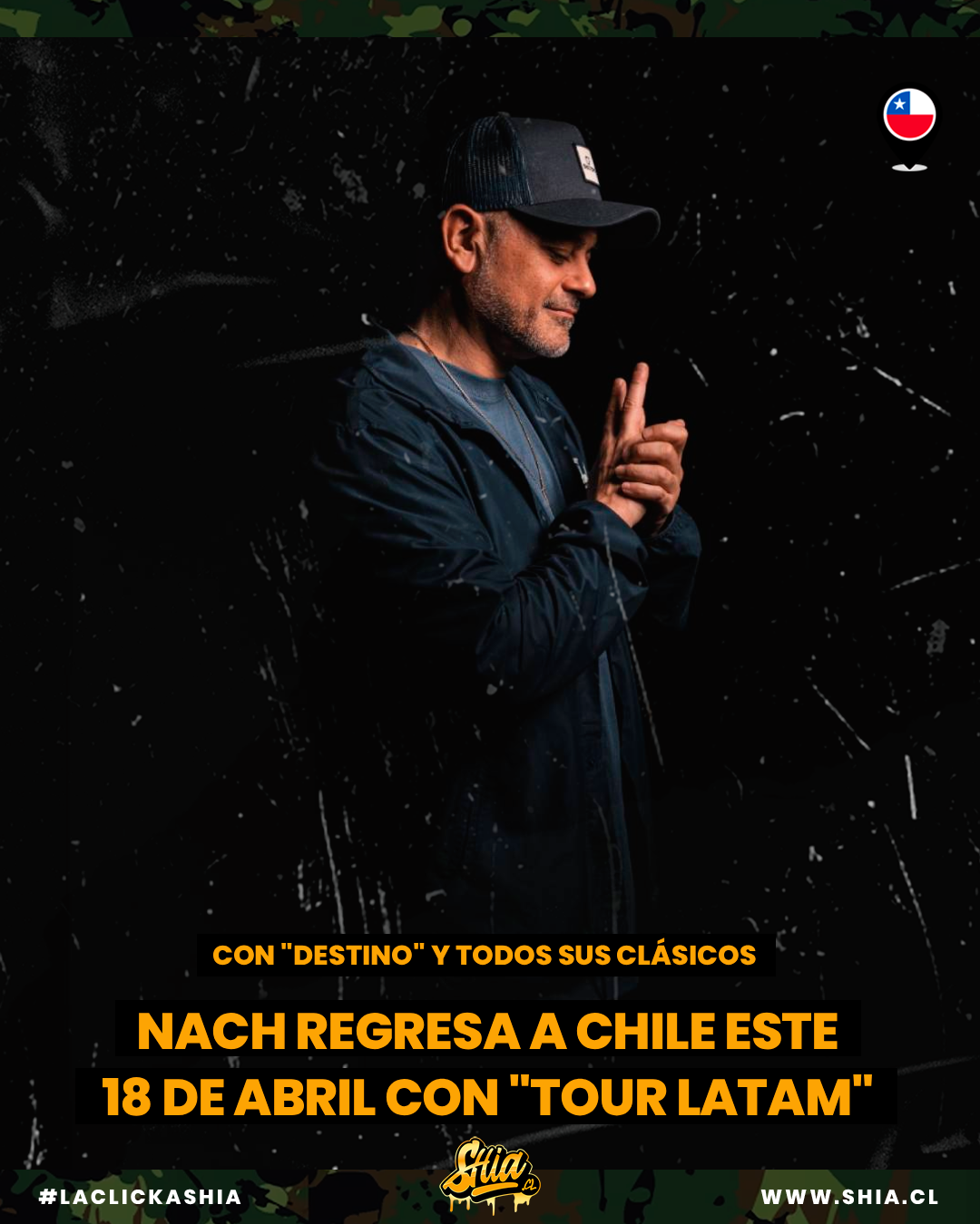 NACH regresa a Chile 🇨🇱🔥 con el “Tour Latam 2026, su nuevo disco “Destino” y todos sus clásicos, luego de tremendos conciertos en España 🇪🇸, donde se presentó en Valencia, Barcelona y Madrid.
