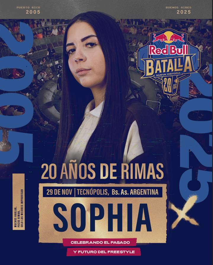 Entre los representantes internacionales, se acaban de anunciar dos nombres potentes de la escena esta semana: Chuty y Sophia. Chuty, por su lado, ha sido parte de la historia de Red Bull desde hace más de 10 años y actualmente tiene el título de bicampeonato nacional. La argentina es parte de la nueva generación del freestyle y ha llamado la atención por sus rimas afiladas en cada enfrentamiento.