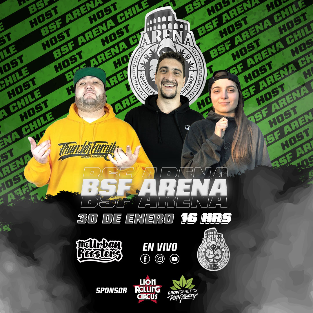 El Banco de Semillas de Cannabis BSF SEEDS, tras la gran repercusión de la primera versión Online de su torneo de Freestyle, regresa BSF ARENA pero esta vez en su versión Chile, la cual tendrá como novedad que esta vez será presencial, pero sin publico debido a la contingencia actual mundial y al resguardo de las normas sanitarias.