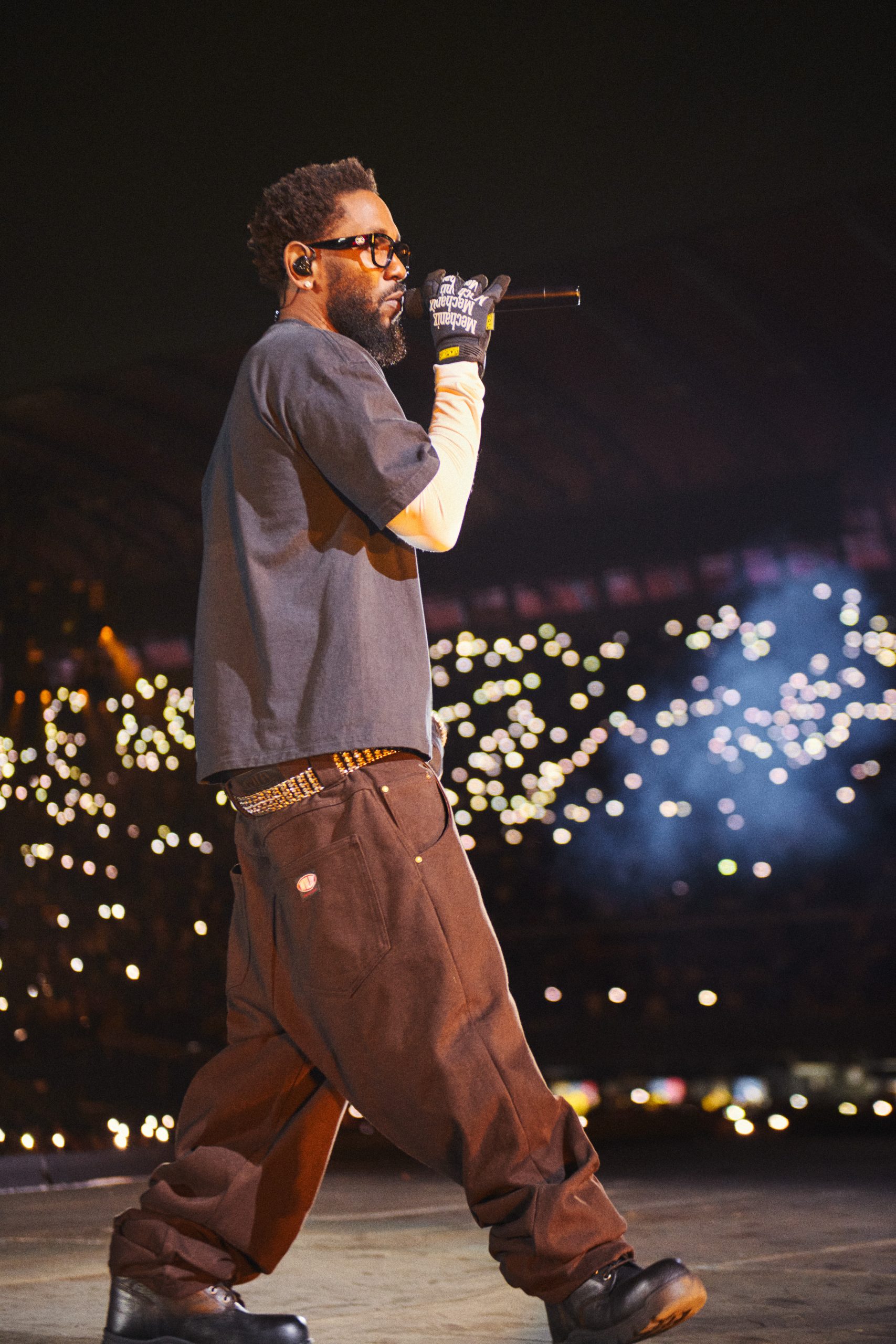 HITS, CLÍMAX Y COMUNIÓN CON EL PÚBLICO El setlist recorrió distintos momentos de su carrera: desde “Wacced Out Murals” y “N95”, hasta clásicos como “King Kunta” y “ELEMENT.”. En el segundo acto destacó una faceta más introspectiva con “Euphoria” y “Reincarnated”, mientras que canciones como “Alright” desataron la euforia colectiva.